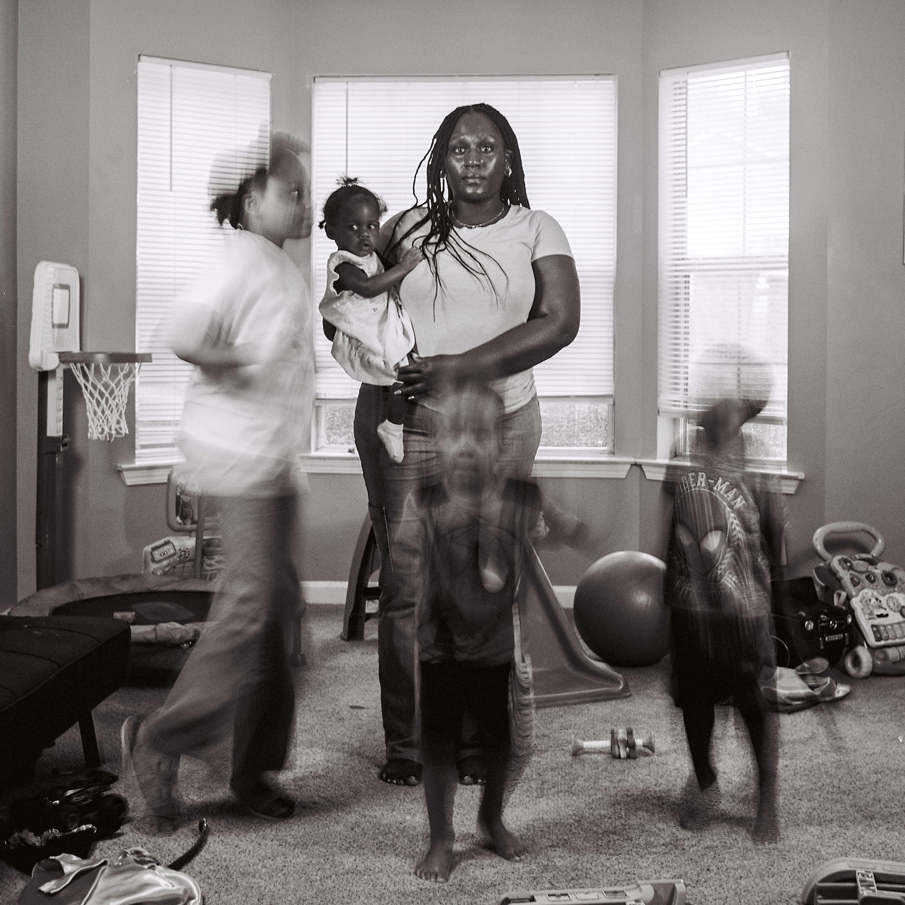 In this series, I worked with over 20 families in Atlanta, capturing their stories through long-exposure photographs and candid moments that reveal the raw, emotional realities of modern parenthood. The long exposures highlight the unpredictable, vibrant movements of children while reflecting the turbulent storms many parents navigate daily.